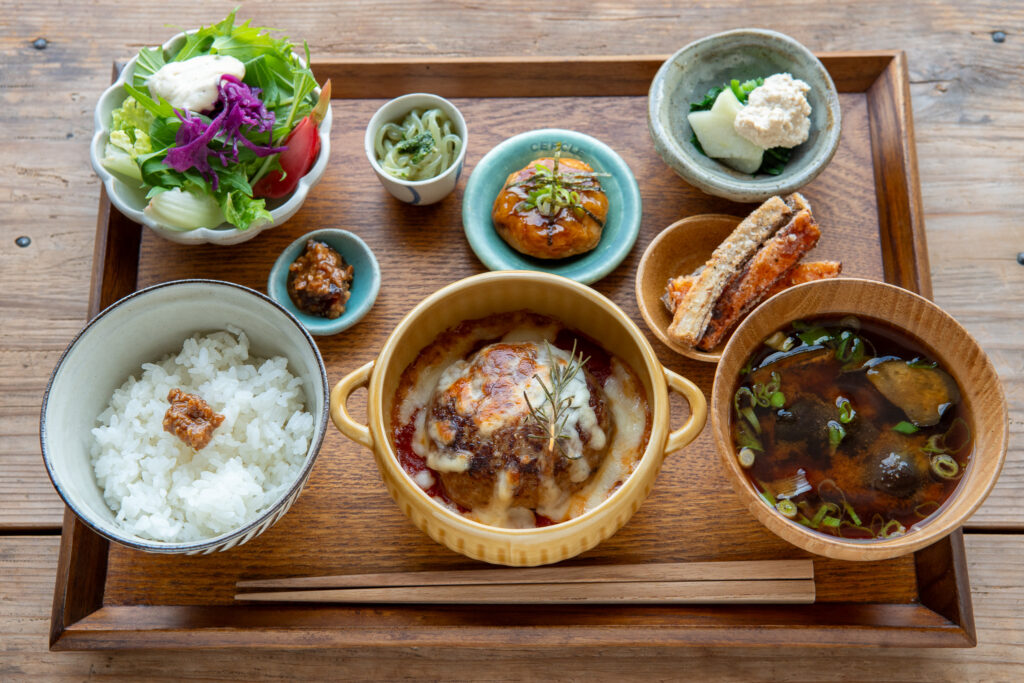 ・トマト煮込みハンバーグのチーズオーブン焼き